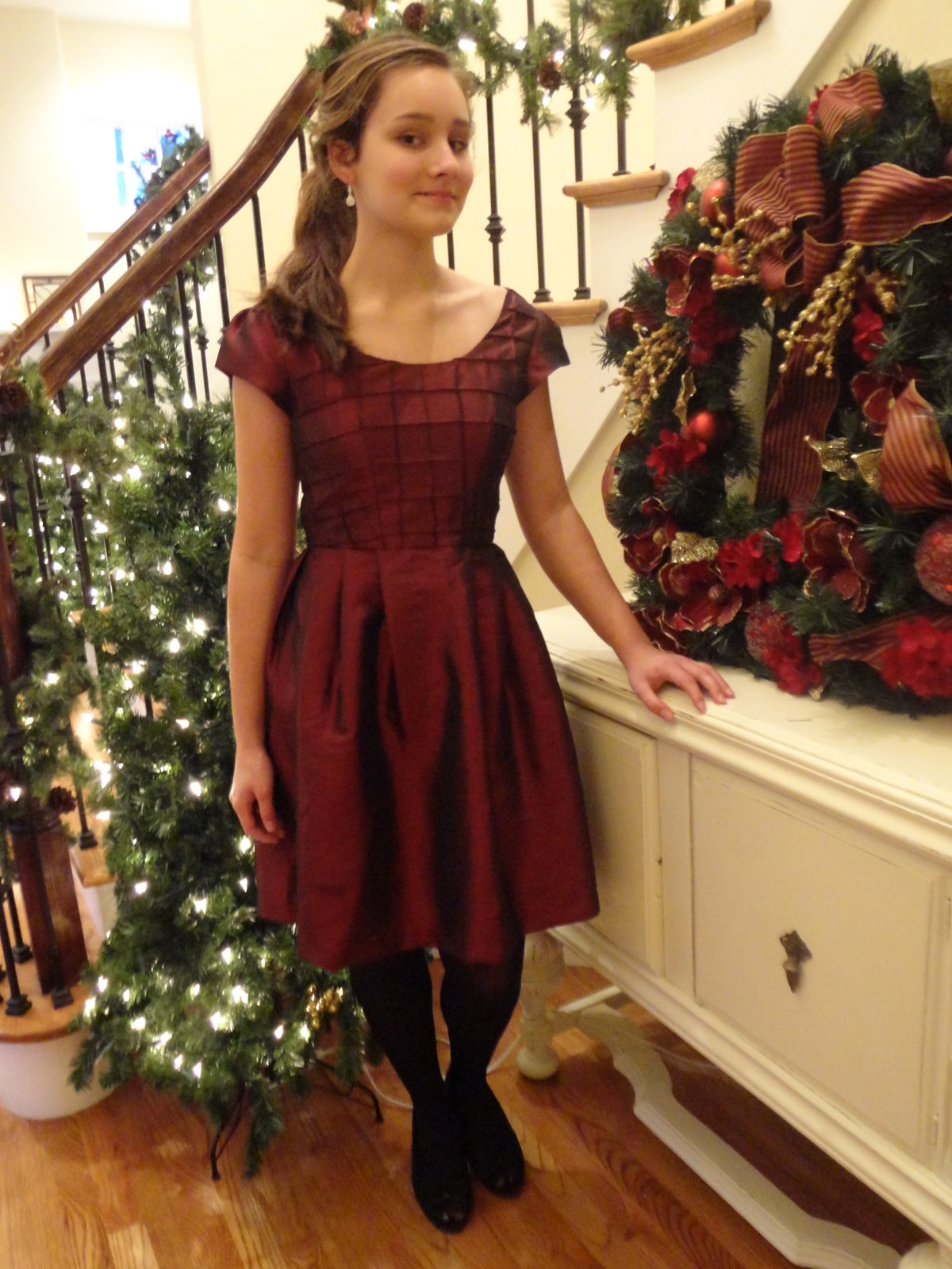 This dress was whipped up in a few days to be worn for Christmas. I stumbled across this dress a few months ago, and decided to use up fabric from the stash.